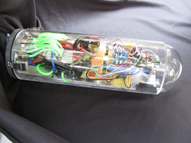 This page presents photographs of the 2013 MATE Remotely Operated Vehicle (ROV) designed and built by the Cornerstone Robotics team.
