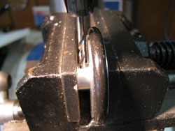 Step 9: Select a drill bit slightly larger than the motor shaft and mark the bit such that the drill bit will not penetrate where the parting will take place. Make sure that you have enough shaft left after parting to accommodate the set screw. Drill the hole into the face.